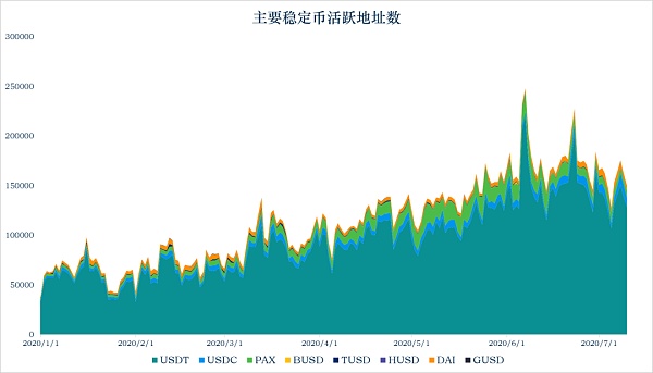 USDT、USDC、PAX、TUSD、DAI的持幣地址數分別上升28995個、3181個、2198個、72個、1626個。
