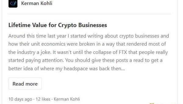 上周,我寫了一篇關于不同加密業務的終生價值的文章:
