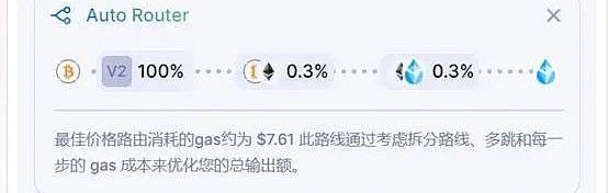 舉個例子來說,在Uniswap上用BTC兌換stETH,首先,是在BTC/WETH資產池中,將BTC兌換為WETH,然后在WETH/wstETH資金池中,將WETH兌換為wstETH,才完成了最終兌換。在這個過程中往往需要支付大量GAS費。