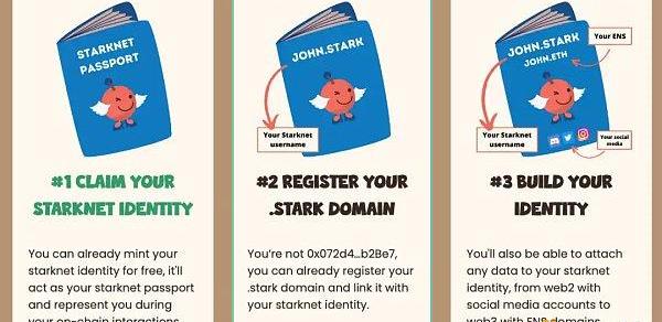StarkNet.id是StarkNet的域名服務,讓用戶免費鑄造基于StarkNet的去中心化身份。用戶還可以將任何數據附加到Starknet身份上,包括從Web2的社交媒體帳戶到Web3的ENS域名等身份標簽,團隊后續計劃推出配套StarkNet身份儀表盤和更多功能,讓用戶能夠更容易管理和構建更加全面的去中心化身份系統。