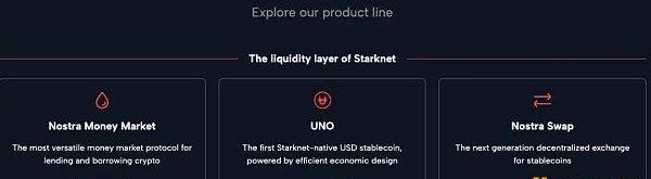 Nostra旨在構建StarkNet的流動性層,由三個產品組成:Nostra貨幣市場、UNO、NostraSwap: