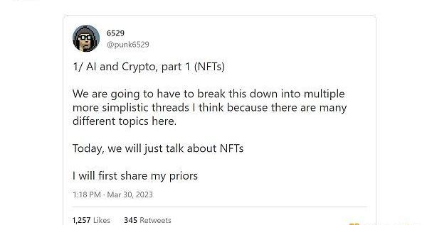 最近讀到了6529發布的一條thread,探討了AI與NFTs,其中一些觀點還挺有意思的,先來分享給大家。