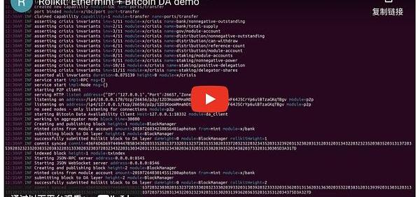 Rollkit支持自定義執行層,包括EVM、CosmWasm或CosmosSDK。為了測試集成,Rollkit在本地比特幣測試網絡上運行EVM作為主權Rollup。請參見下面的演示?。