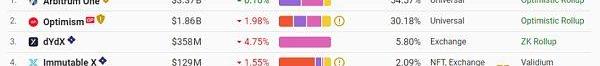 Arb生態和OP生態具備先發優勢,市場關注度高,資金較為集中。形成了Arb+GMX、OP+SNX的生態,競爭將長期存在。