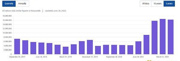 2020年下半年疫情擔憂褪去后而美聯儲仍在承諾維持0利率很長時間,量化寬松持續進行,通脹也見不到影子,全球迎來了科技企業的融資熱潮期,startups貸款和風投額度的快速增長使科技初創企業手里積累的大量的現金和存款,而這些存款很大程度流入了SiliconValleyBank這一硅谷最重要的、也是全美前20大的銀行。2020年6月至2021年12月的一年半期間,SVB的存款由760億美元上升到超過1900億美元,增幅接近2倍。