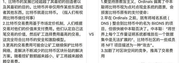 但與BTC歷史上發生過的諸多事件類似,Ordinals的出現再次在比特幣社區引發了關于比特幣網絡是否應該用于非金融目的及比特幣愿景的爭議。兩種爭議意見簡單概括而言如下: