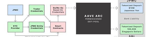 為了使這個圖表簡單易懂,我省略了JPMC和SBI將他們的代幣化存款發送到AaveArc協議中,而是顯示了直接輸入Aave協議的允許過程,以及每個交易對手所持有的銀行負債。