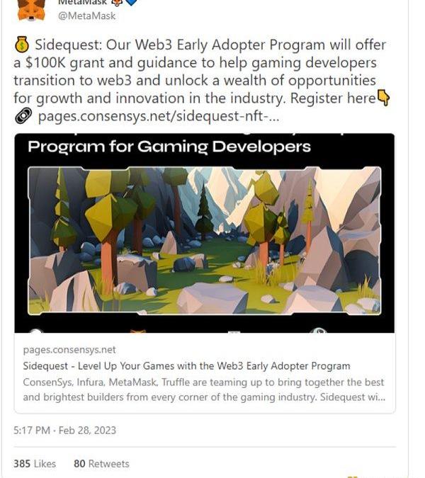 為了開始MetaMask和Unity的融合,ConsenSys還推出了web3早期采用者計劃,為有興趣向NFT飛躍的游戲開發者提供workshop和10萬美元資助。