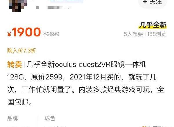 還有人買了Oculusquest2后3個月也選擇出手,也就用過5次,據賣家解釋是因為暈VR。