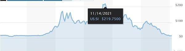 但成也蕭何,敗也蕭何。隨著2022年行業逐步走向低迷,尤其是連續不斷的爆雷事件,SI股價一路走低,目前相對高點暴跌超90%,市值僅4億美元,其中FTX崩潰后跌幅就超過70%。