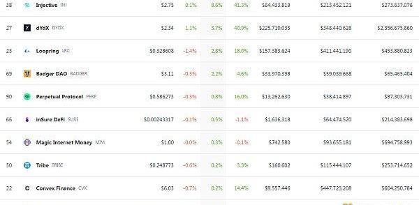 1、DeFi代幣總市值:489.31億美元