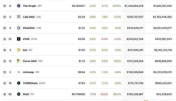 DeFi總市值及前十代幣數據來源:coingecko
