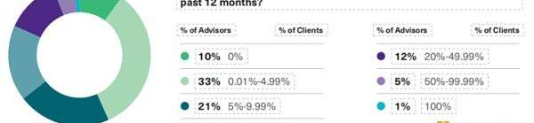 在客戶賬戶中配置加密貨幣的顧問中,絕大多數(95%)在客戶投資組合中持有加密貨幣的權重為5%或更低。