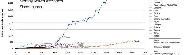從2020年12月到2021年12月之間的月活開發者增長情況