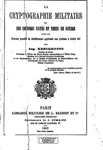 Guillot,Philippe,“AugusteKerckhoffsetlacryptographiemilitaire,”Bibnum?,Calculetinformatique,May1,2013,http://journals.openedition.org/bibnum/555(accessedonNovember4,2022)
