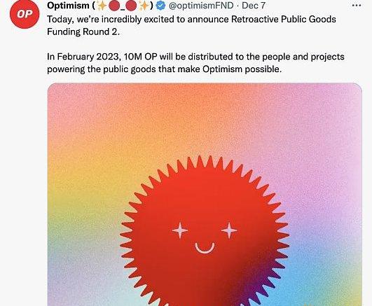 5.訂閱OptimismRetroPGF,據官推消息,2023年2月,將有1千萬枚OP獎勵給為公共產品做出貢獻用戶和項目