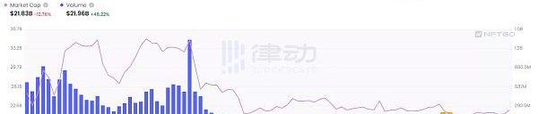 NFT市場總市值在3月曾達到峰值為349.6億美元,自5月下跌后持續低迷,總市值持續維持在210至230億美元之間,在11月跌至最低僅為208.2億美元,跌幅達40.5%。
