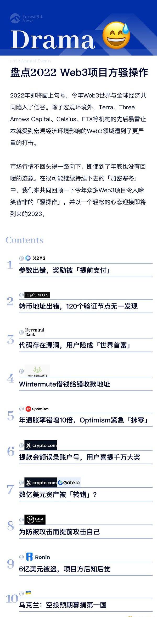 市場行情不回頭得一路向下,即使到了年底也沒有回暖的跡象。在很可能繼續持續下去的「加密寒冬」中,我們來共同回顧一下今年眾多Web3項目令人啼笑皆非的「騷操作」,并以一個輕松的心態迎接即將到來的2023。