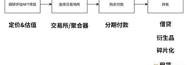 為了方便讀者的理解,本文會從購買到持有NFT的全流程來分解,將其分為四個階段:項目評估、選擇交易場所、購買付款、持有四個階段,涉及到從定價評估到交易、分期再到借貸、衍生品、碎片化和租賃。