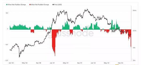 我們可以看到,自從夏天第一次信貸緊縮以來,礦工們一直在凈賣出大量的比特幣。他們必須這樣做,以試圖保持他們的大筆法幣債務負擔。而如果他們沒有債務,他們仍然需要支付電費,由于比特幣的價格如此之低,他們必須出售更多的比特幣來維持設施的運作。