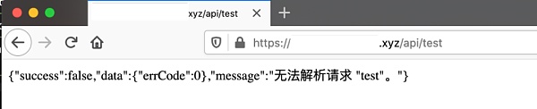 如果訪問一個不存在的API端點,如“/api/test”,服務器將返回帶有錯誤消息的頁面,如下圖“無法解析請求”。此外,我們發現鏈接中的內容出現在了服務器返回的頁面中。