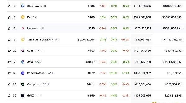 DeFi總市值及前十代幣數據來源:coingecko