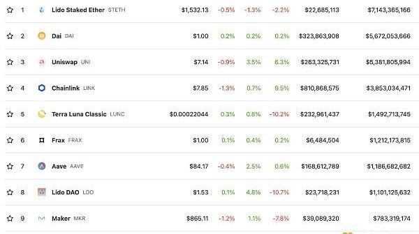 DeFi總市值及前十代幣數據來源:coingecko
