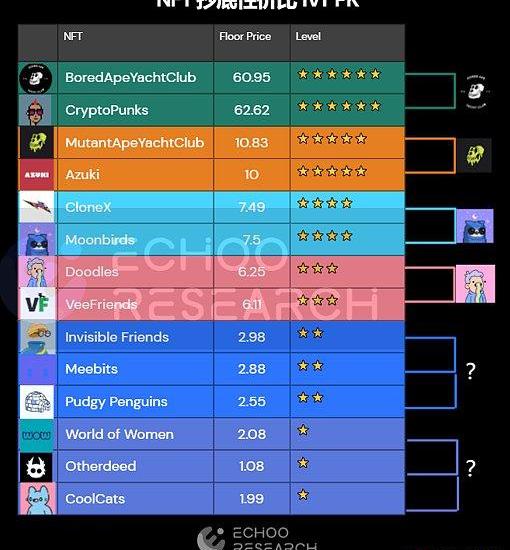 ?EchooResearch按照近期NFT的數據情況、鏈上指標,將NFT分為6個買入等級。同時在每個等級進行橫向數據對比,并給出優選建議。