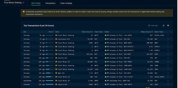 深入研究的一種方式是,查看我們的SmartMoney數據面板并篩選FirstMoverLP和Staking,以獲取過去24小時活躍的地址列表。接下來,使用WalletProfiler研究地址,并為您所在時區的活躍地址,設定一個鏈上智能警報。
