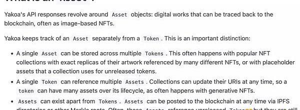 雖然是一個成熟web2技術,但是我們從它的開發文檔中也可以看到web3原生的一些創新,如下圖其首先對于資產進行了定義,在他的眼里資產和token是解耦的,我們平時說的NFT實際上是將資產和token一體化,即如我持有Azuki#9527,它本質的含義是一個id為9527的token,但是我們會默認帶上附加在上面的那張圖片。