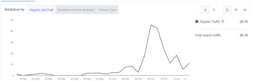 下圖對?https://www.xencrypto.io/?的referral流量按照時間維度進一步拉取,發現referring流量的站點自10月9日來持續上漲,截至目前站點已經累積了300多條外鏈,其中有很多是Crypto資訊站。