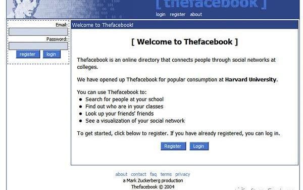 2004年,Facebook的主頁