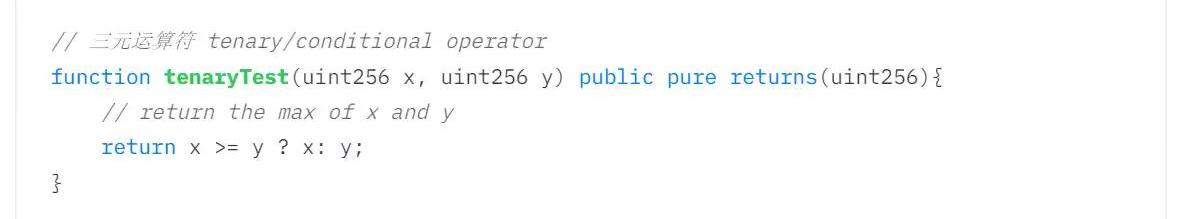 三元運算符是solidity中唯一一個接受三個操作數的運算符,規則條件?條件為真的表達式:條件為假的表達式。此運算符經常用作if語句的快捷方式。