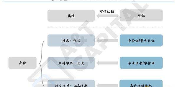 因此我們可以看到,一個身份,是由許多個屬性組成的,例如剛才張三對自己的陳述中,所涉及的姓名、出生年、學歷、社交圈等屬性。但是,如果沒有相應具體的憑證,這些屬性是沒有可信度的,而多數應用場景不會去采納一個沒有可信度的數字身份。由于在Web3中,一個身份的屬性來源更加多樣、潛在使用方更加廣闊,難以找到一個中心化的總擔保方,因此對每個屬性的憑證驗證就顯得更加突出。