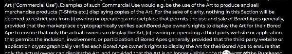 條款大致意思是只有實際的無聊猿NFT所有者才有權展示BAYC藝術品且有一定的場景使用局限。