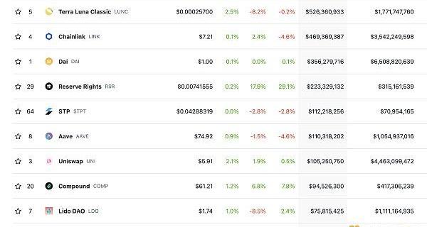 DeFi項目鎖定資產前十排名及鎖倉量數據來源:defillama