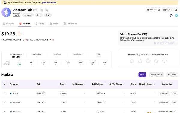 在撰寫本文時,火幣、Poloniex、Gate?和?BitCoke?已經上市了$ETF。毫不奇怪,這些都是基于中國的交易所。由于Poloniex是第一個聲稱支持ETF的交易所,孫宇晨無疑是幕后推動者。