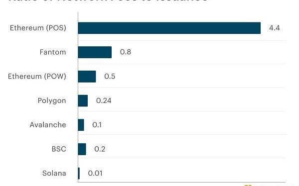 可持續性:我們正在研究的6個區塊鏈都在以不同的規模運行。它們有不同的硬件需求、用戶數量、交易速度、驗證者數量等。因此,每個網絡的發行獎勵會根據網絡的具體需求而有所不同。根據銷毀率的不同,一個區塊鏈需要網絡費用與發行量比率至少為1才能成為可持續的。在我們正在研究的6個區塊鏈中,只有以太坊的這一比率超過1(見圖3)。