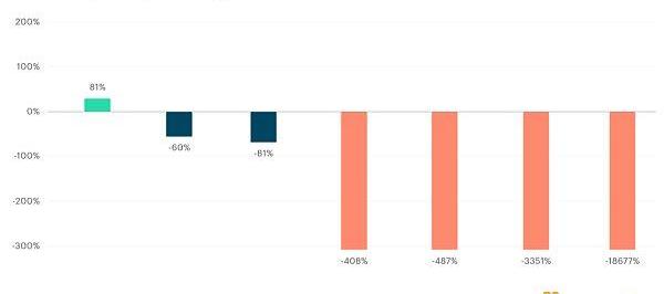 銷毀的代幣減去發行的代幣,可視為鏈的一種盈利形式。記住上述所有因素,我們可以看到,運行PoS的以太坊鏈估計有81%的假定利潤率(見圖6)。