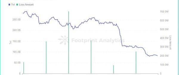 上半年DeFi損失金額及TVL走勢