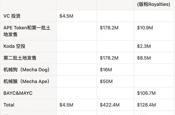 同時我們看看PFP類NFT目前Top1項目方YugaLabs是如何獲得營收的。其預測2022年有5.5億美元收入,加上VC融資的4.5億美元總共10億。