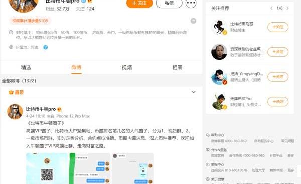 需要注意的是,目前在一些網絡社交平臺上這一類的用戶賬號比比皆是,除了“比特幣牛頓pro”外,還有天津幣俠Pro、比特幣教主Max、比特幣黑馬哥等多個賬號,這些賬號IP均顯示來自河南,同樣也會發布一些所謂的“高端VIP圈子”、號稱可手把手帶領小白零基礎學習炒幣,并指導精準建倉、抄底、加倉、逃頂等操作,還會推薦一級、二級市場百倍幣種……