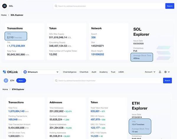 Solana交易處理效率遠超以太坊??來源:oklink.com