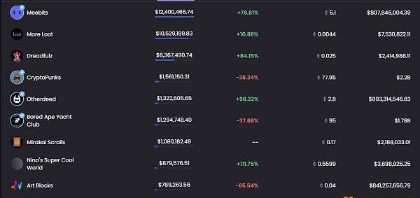 24小時內銷售漲幅前十的NFT數據來源:NFTGO