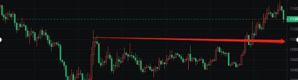 15分鐘級別線,BTC從8771.21 USDT開始處于旗型上升震蕩。