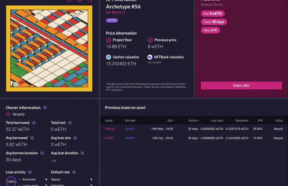 NFT所有者可以將他們的NFT上架到平臺并填寫他們喜歡的條款,包括貸款金額、期限、APR和代幣,流動性提供者則可以在平臺上瀏覽每個NFT的貸款條款并提出報價。