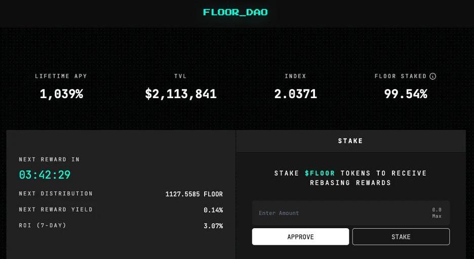 質押者可以使用FloorDAO協議質押$FLOOR,以從協議中獲得變基獎勵$sFLOOR,每次rebase都會自動累積獎勵。