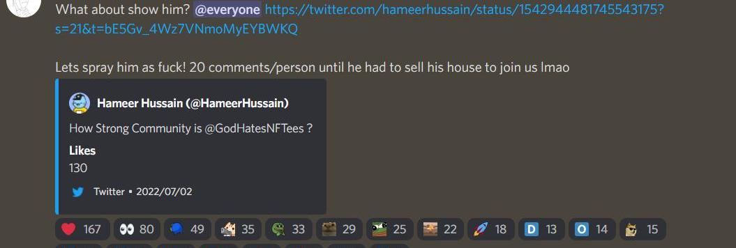 「GodHatesNFTs社區有多么強大?」NFTKOLHameerHussain發了一條Twitter問道。
