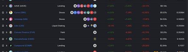 DeFi項目鎖定資產前十排名及鎖倉量數據來源:defillama