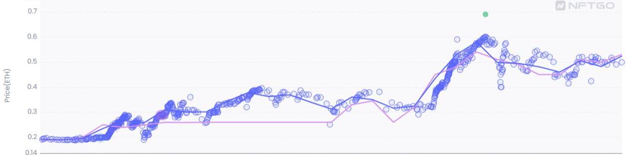 伴隨著這個消息發布,GossamerSeed應聲大漲。短短三個小時,地板價從0.3ETH左右飛漲至0.65ETH。